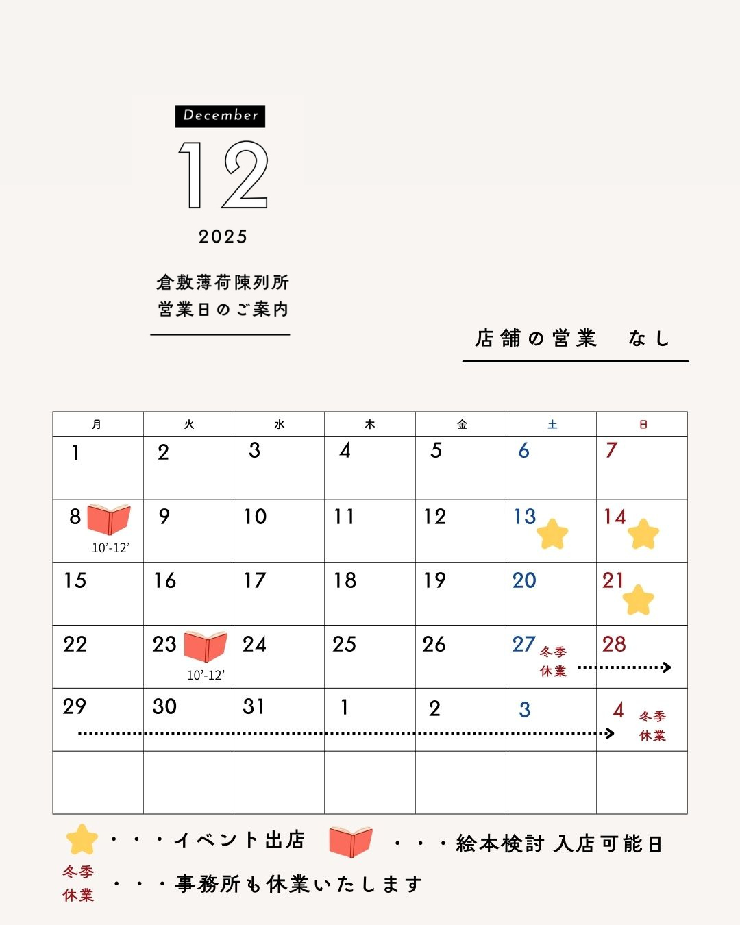 誠に勝手ながら、12月は実質の店舗での営業日はございません🙇♀️